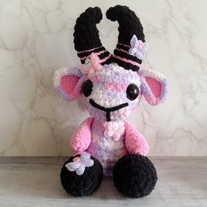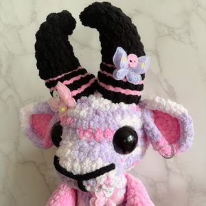 Meet your new favorite little chaos creature! She’s a soft, spooky-sweet crocheted goat with major pastel goth and pop-punk vibes.